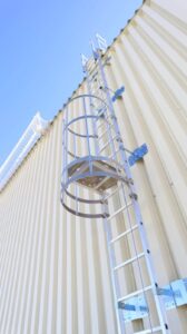 Ubicación: San José de la Rinconada, Sevilla Sencillas escaleras con líneas de vida sujetas a bloque de hormigón y perfiles de estructura metálica en la
