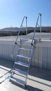 Ubicación: Ayamonte, Huelva Instalación de claraboya de acceso a cubierta con escalera de servicio con una inclinación de 70º y pasamanos. Este tipo